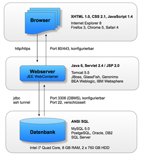 Die Anwendungs-Plattform und damit alle darauf aufbauenden Lösungen sind webfähig (W3C XHTML konform). Sie benötigen keine zusätzliche Installation, ein einfacher Web-Browser genügt und Sie können weltweit auf Ihre Anwendung und Ihre Daten zugreifen.